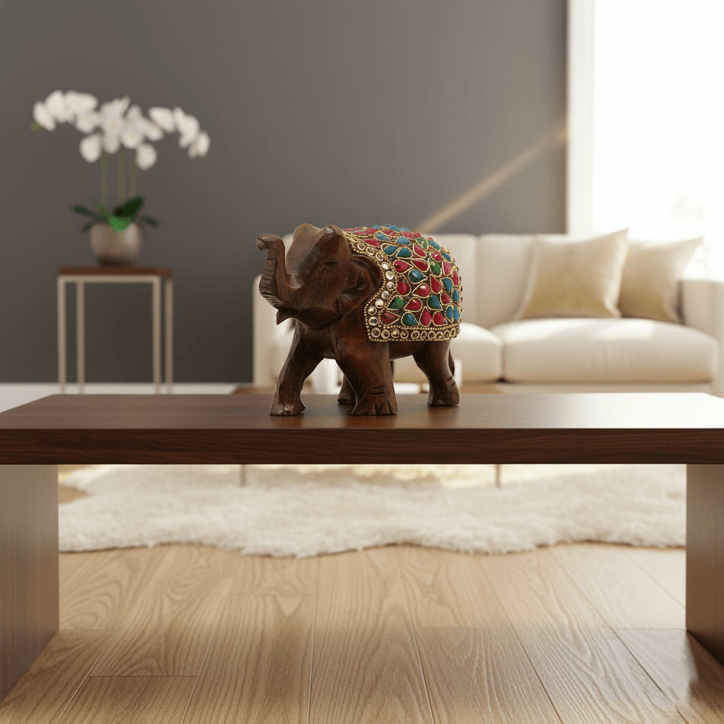 Wooden Elephant W/Multi Colored Beads 3" By Stories
